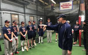 Winter Workouts transition to high repetition positional work in sessions (Spring Training style) at Boston College. These are early morning workouts that begin at 6:00am in “The Bubble” at Boston College. Workouts include positional work for all players in the program. Among the features is the opportunity for our youngest players to learn the drills and to take reps right along with the older players. And again, pro scouts are in attendance both as instructors and evaluators. Why? Because they want to be here, working hands on with players who care to get better. On Sunday, February 2nd, 80 players gathered in the early dawn of winter and participated in a brisk two hour workout. Positional stations were manned by professional scouts along with Ruffnecks coaches. Infielders did bucket work and low impact throwing. First basemen conducted a range of footwork and receiving drills. Outfielders practice drop steps, conducted angle work, and took fly balls. Rich Gedman prepped the catchers with blocking and receiving drills. And of course, pitchers listened to Ace and conducted flat ground throwing.